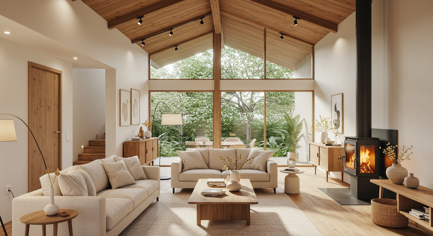 The single-level, main house features 3 bedrooms and 2 bathrooms. Every window in the house frames captivating views of the surrounding garden. As you step inside the main home, the seamless integration of large windows and doors allows an abundance of natural light to flood the living spaces, providing a serene, indoor-outdoor feeling that defines the essence of this property. The natural wood ceiling and beams creates a cozy and charming atmosphere throughout the home.